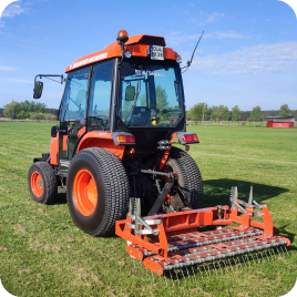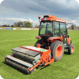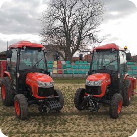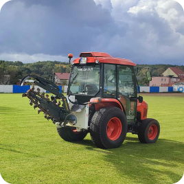 Nowoczesny park maszyn, składa się z urządzeń służących do pielęgnacji muraw piłkarskich topowych i wiodących producentów w tej dziedzinie.